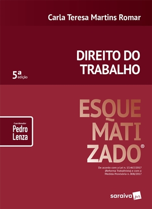 A série “Esquematizado” é daquelas receitas que a Saraiva não se importa em recomendar. Para além da já reconhecidíssima obra “Direito Constitucional Esquematizado” vale a pena conhecer também Direito do Trabalho Esquematizado. A obra foi confiada à competência de Carla Tereza Martins Romar (PUC-SP, 2003) que se compromete a entregar uma obra de simples entendimento, mas completa em conteúdo, para servir de obra principal ou de apoio ao estudante de Direito que deseja se aventurar no Direito do Trabalho. O texto é atualizado até a Lei 13.467/2017 (Nova Reforma Trabalhista) e com a Medida Provisória (MP) 808/2017 (de vigência encerrada).