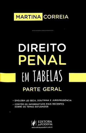 Por isso, Martina Correia idealizou e executou uma obra que é um enorme implemento no estudo de qualquer curso de Direito Penal, seja para aprendizado na formação do bacharel, seja para a preparação rumo àquele desejado concurso. Todos queremos e precisamos desse tipo de material: são tabelas, contendo toda a sistemática do Direito Penal na sua parte inicial, permitindo que o estudante possa reproduzi-las ou melhorá-las, adaptando à sua necessidade sem que haja significativa perda de conteúdo no processo de conversão. Uma obra excelente e sempre necessária!